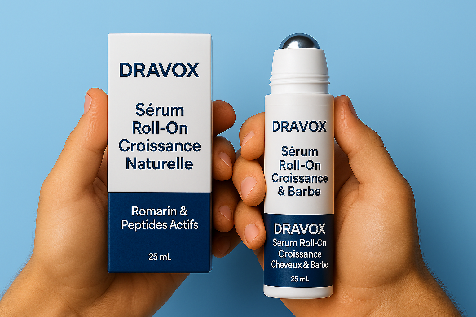 Boostez naturellement la pousse de vos cheveux et de votre barbe grâce au Sérum Roll-On au Romarin DRAVOX™.